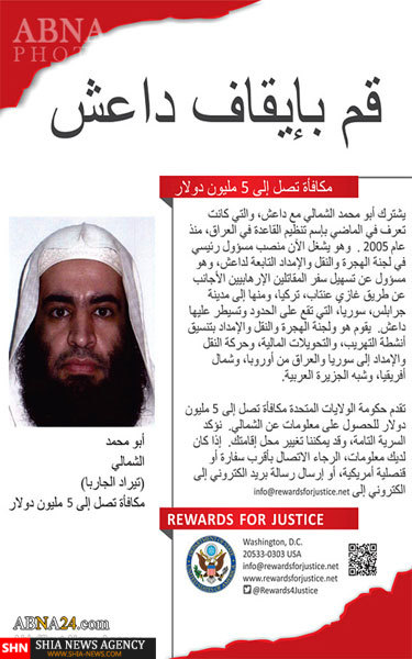 وزارت امور خارجه آمریکا اعلام کرد «طراد الجربا» معروف به «ابو محمد الشمالی» یکی از اعضای مهم گروه تروریستی داعش است.