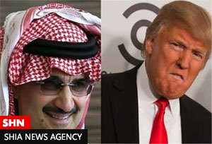 ترامپ در توییتر خود در واکنش به انتقاد ولید بن طلال، او را "شاهزاده‌ای نشئه‌" توصیف کرده که می‌خواهد با "پول بابا" کنترل سیاستمداران آمریکایی را در دست داشته باشد.