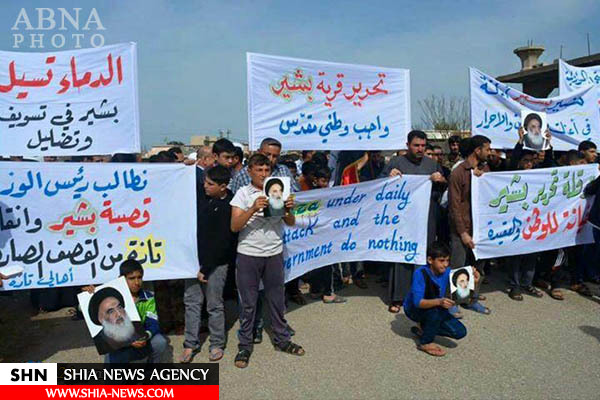 مردم شهر "تازه" كركوک، با برگزاری تظاهرات بزرگی خواستار آزادسازی ناحيه "بشير" از دست جلادان داعش و نجات ناحيه "تازه" از بمباران مستمر شدند. آنها با درد دست داشتن تصاویر «آیت الله العظمی سیستانی» و سر دادن شعارهایی همچون "يا شيعة محمد وعلي انقذونا" ، "تحریر بشیر واجب وطنی مقدس" از ودولتمردان و مرجعیت عراق کمک خواستند.