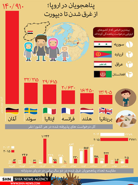 در سال ۲۰۱۵ کشورهای عضو اتحادیه اروپا تقاضای پناهندگی بیش از ۲۹۲ هزار پناهجو را پذیرفته اند در حالیکه طی همین سال بیش از یک میلیون مهاجر تقاضای پناهندگی داده اند.