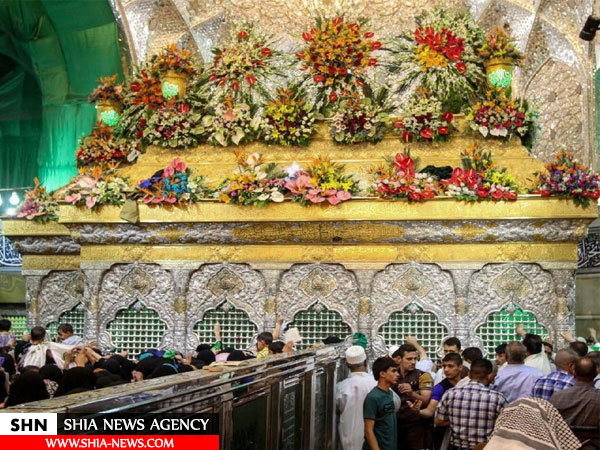 گل آرایی ضریح امام حسین (ع) به مناسبت اعیاد شعبانیه