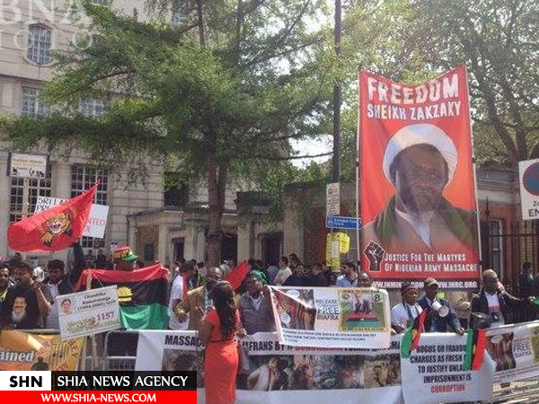 همزمان با سفر رئیس جمهور "نیجریه" به "انگلستان"، صدها تن از شهروندان مسلمان و شیعه "لندن"، به دعوت "کمیسیون حقوق بشر اسلامی"، به تظاهرات پرداختند و خواستار احقاق حقوق قربانیان این فاجعه غم انگیز شدند.