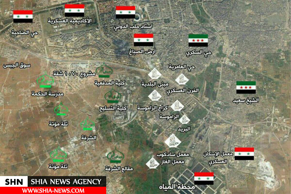 از شب گذشته تا بدین لحظه نیز توپخانهها و جنگندههای ارتش سوریه، تکفیریها را آرام نگذاشته و به طور پیوسته آنها را گلوله باران می کنند. این حملات بیشتر بر روی دانشکده توپخانه و دانشکده نظامی استان حلب متمرکز بوده است، چرا که تروریستها قصد داشتند با تسلط بر این دو دانشکده، دامنه گذرگاه عبوری خود به سمت شرق حلب را افزایش دهند.