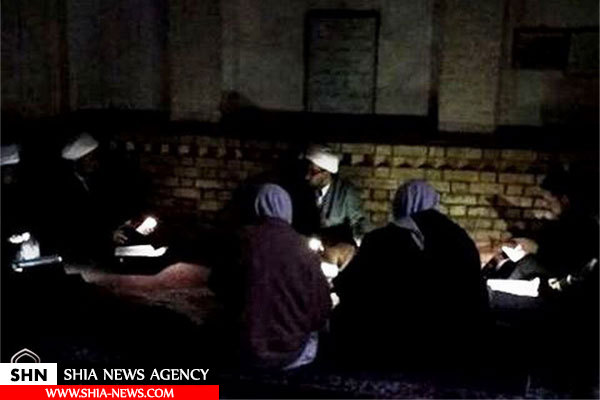 در زیر عکسی از طلاب حوزه را می بینید که پس از اقامه نماز صبح به تحصیل مشغول هستند. وضعیت برق نجف همچنان نامناسب است.