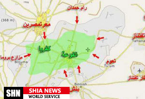 شهرک ها و روستاهای بنش، طعوم، تفتناز، رام حمدان و معره مصرین اصلی ترین محل حضور تروریست هایی هستند که به صورت روزانه دو شهرک شیعه نشین و محاصره شده فوعه و کفریا را هدف قرار می دهند.
