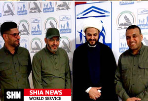 «احمد الأسدی» سخنگوی رسمی حشد شعبی و «ابو الاء الولایی» دبیرکل کتائب سید الشهداء، در این دیدار حضور داشتند.