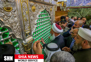 به گزارش «شیعه نیوز»، هیئتی از علما و ائمه جماعت و خطبای اهل سنت، عشایر و نمایندگان نیروی "احرار العراق" حاضر در بسیج مردمی به ریاست شیخ مهدی الصمیدعی مفتی اهل سنت عراق به زیارت حرم امیر المؤمنین علی (علیه السلام) مشرف شدند و مورد استقبال خالد هادی شنون معاون تولیت آستان مقدس علوی قرار گرفتند.