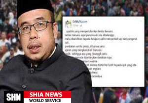 به گزارش «شیعه نیوز»، این شعر که روز جمعه هفته گذشته در صفحه شخصی 'محمد عصری زین العابدین' رهبر مذهبی مالزی منتشر شد، اکنون در این صفحه قابل دسترسی نیست.