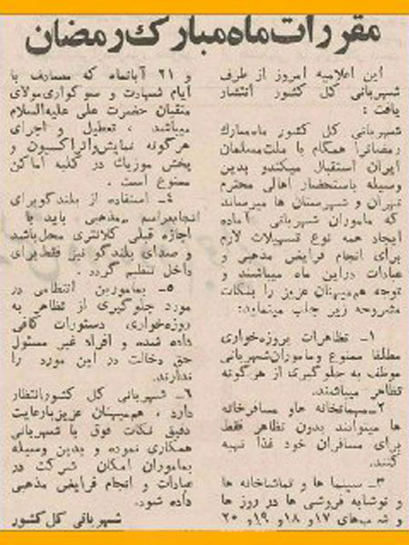 مقررات و محدودیتهای ماه مبارک رمضان در سال 1350 . زمان شاه
