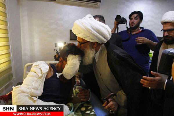 عیادت یکی از مراجع تقلید از مجروحان عراقی و دیدار با خانواده شهدا