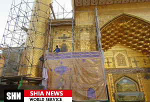 پیشرفت طرح بازسازی ایوان و گلدسته‌های حرم مطهر علوی