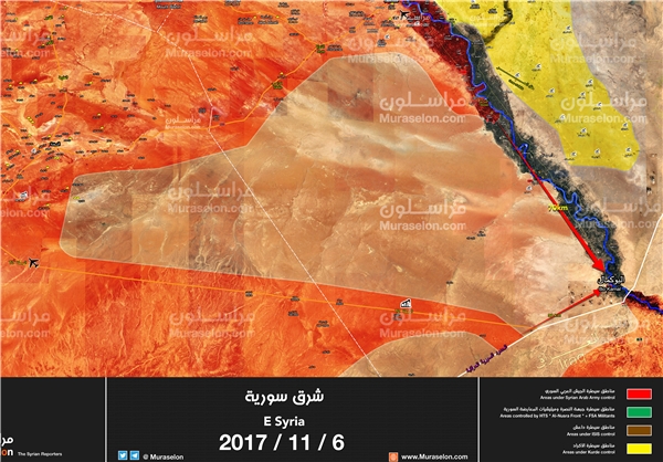 از محور المیادین، نیروهای سوری با شهر بوکمال، 70 کیلومتر فاصله دارند.