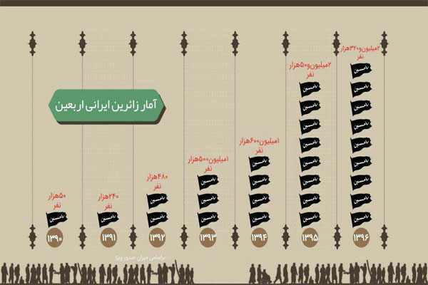 در این تصویر آمار زائران اربعین حسینی از سال ۹۰ تا ۹۶ را می بینید.