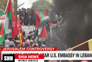 سی ان ان در ادامه گزارش داد: معترضان در لبنان در نزدیکی سفارت آمریکا در بیروت دست به تظاهرات زدند که با مقابله نیروهای امنیتی مواجه شدند.