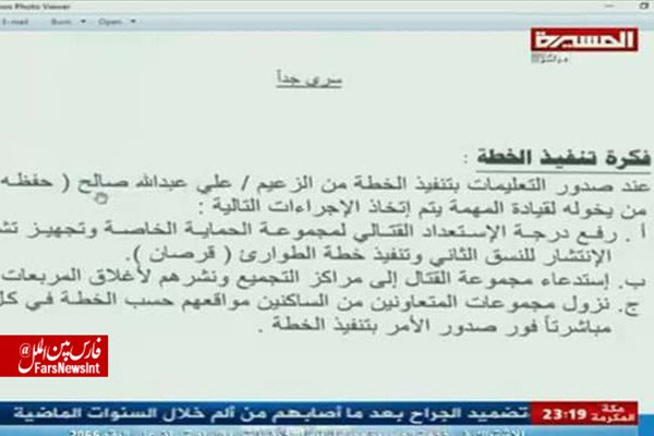 از جمله اسناد منتشر شده توسط شبکه المسیره سندی است که صفت «بسیار محرمانه» دارد و مربوط به ایده اجرای طرح نظامی علیه صنعاست که شامل دستور العملهایی برای اجرای طرح بر اساس توصیه «طارق عفاش»، برادر زاده علی عبدالله صالح سرکرده شبه نظامیان یا هر فرد دیگری است که به گفته این سند فرماندهی عملیات به وی واگذار میشود.