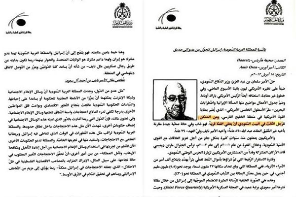 این چیزی است که اسناد منتشر شده از طریق ویکی لیکس به آن اشاره می شود و یک افترا ضد ریاض به شمار نمی رود. بر اساس سندی که در تاریخ 27 دسامبر 1966 میان کاخ پادشاهی عربستان و کاخ سفید رد و بدل شده، عربستان به صراحت از رژیم صهیونیستی خواسته است تا صحرای سینا را اشغال کند تا مصر شکست بخورد. در آن زمان مناسبات متشنجی میان قاهره و ریاض وجود داشت.