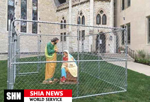 به گزارش «شیعه نیوز»، کلیسایی در ایالت ایندیانای آمریکا مجسمهای از حضرت مریم که حضرت مسیح را در آغوش دارد در کنار یوسف نجار درون قفسی آهنی قرار داد تا به سیاست مهاجرتی دونالد ترامپ که خانوادهها را از هم جدا کرده است، اعتراض کند.