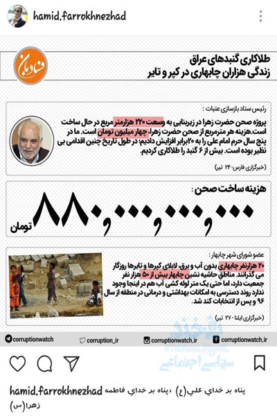 گفتنی است، حمیدفرخنژاد با انتشار تصویری از مقایسه هزینههای ستاد عتبات در عراق با مشکلات معیشتی در سیستان وبلوچستان نوشت: