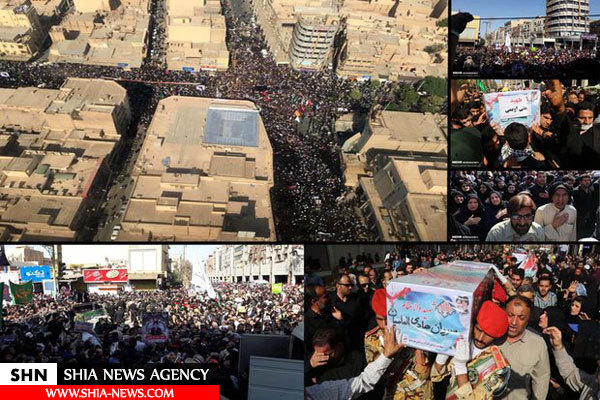 مراسم تشییع پیکر شهدای حادثه تروریستی اهواز امروز از مقابل حسینیه ثارالله اهواز به سمت چهار راه زند تا گلزار شهدای بهشت آباد برگزار شد.