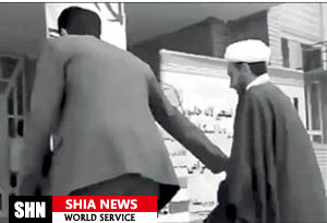امام جمعه از بخشدار می خواهد پشت تریبون نرود. بخشدار دست امام جمعه را کنار می زند.
