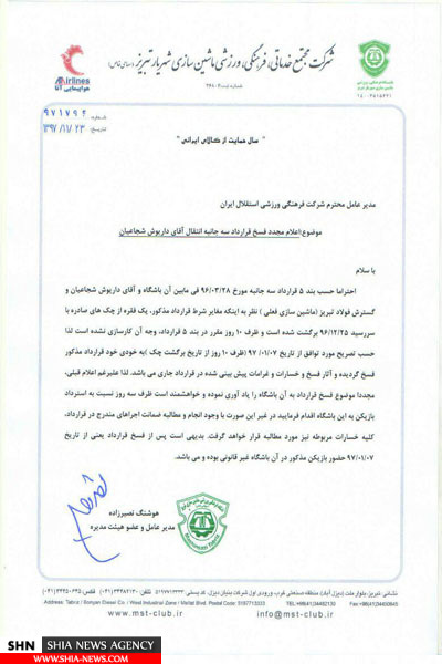 تصویر آخرین مکاتبه باشگاه فرهنگی ورزشی ماشینسازی تبریز با استقلال تهران: