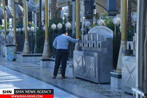 خدمت رسانی خادمان در حرم حضرت عباس (ع) و صحن های آن