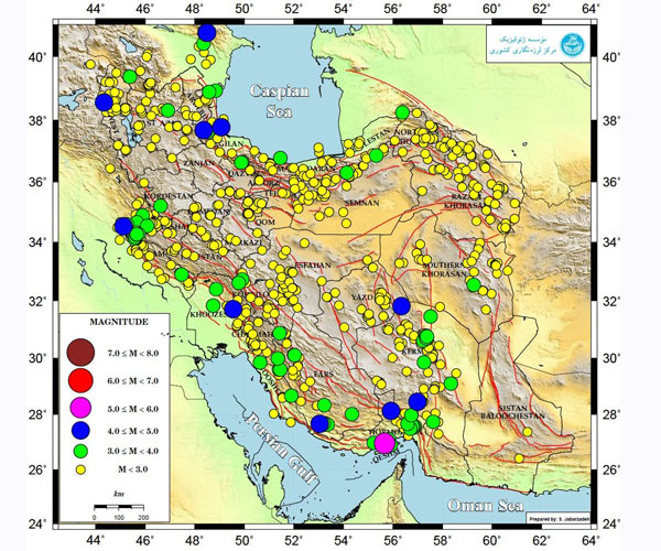 از لحاظ آماری ۸۷۴ زمینلرزه دارای بزرگای کوچکتر ۳، تعداد ۷۹ زمینلرزه دارای بزرگای بین ۳و۴ و تعداد ۱۲ زمینلرزه دارای بزرگای بین ۴ و ۵ و تعداد یک زمینلرزه دارای بزرگای بین ۵ و ۶ بوده است.