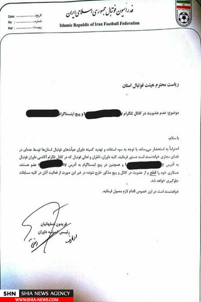 البته این درخواست با تهدید هم همراه و در این نامه عنوان شده هر کدام از داوران، ناظران و اهالی فوتبال در این کانال و صفحه عضو باشند از فعالت در کلیه مسابقات منع میشوند.