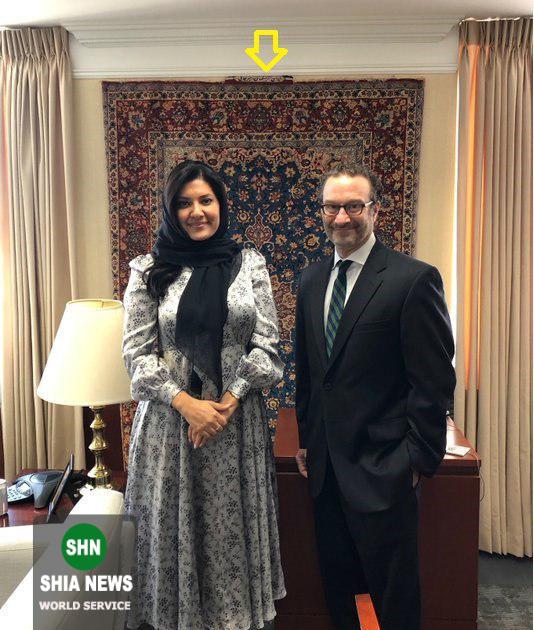 به گزارش «شیعه نیوز»، «ریما بنت بندر بن سلطان»، سفیر عربستان در آمریکا، روز گذشته با دیوید شینکر، معاون وزیر امور خارجه آمریکا در مسائل خاور نزدیک، دیدار کرد که در تصاویر منتشر شده از این دیدار فرش اصیل ایرانی خودنمایی میکند.