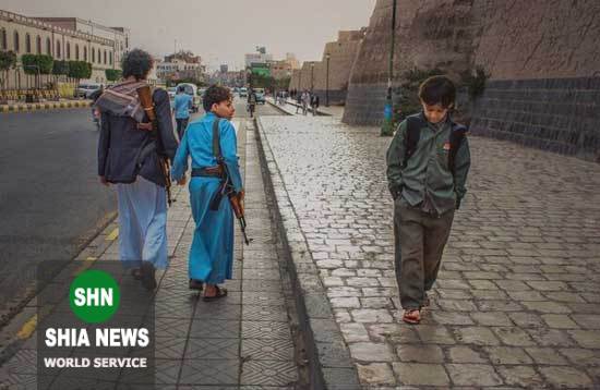 اینجا یکی از خیابانهای قدیمی شهر صنعاست. کودکی در حال بازگشت از مدرسه است و در حالی که کولهپشتی روی دوشش انداخته، عمیقا فکر میکند. شاید در فکر آینده است و روزهای نامعلومی که انتظارش را میکشند. درست در همان لحظه کودکی کلاشنیکف به دوش در حالی که دست پدر مسلح خود را گرفته از کنارش رد میشود و به سمت جنگ میرود.