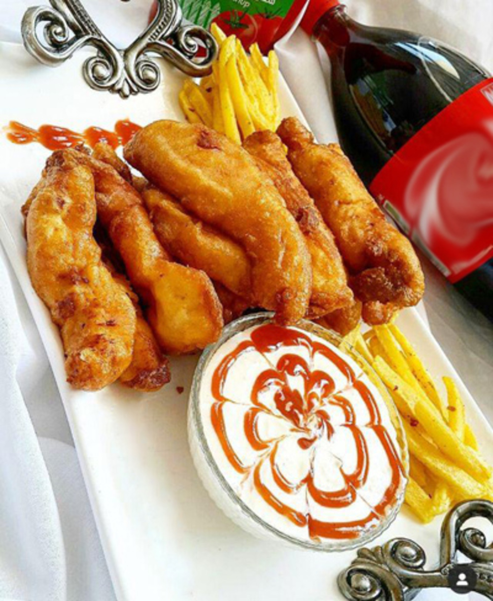 سپس فیله مرغ را در موادتان بزنید و در قابلمه کوچک و پر روغن سرخ کنید فقط حواستان باشد شعله ملایم باشد وگرنه خمیر در روغن داغ می سوزد.