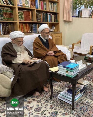 آیت الله سبحانی با حضور در بیت آیت الله صافی گلپایگانی با این مرجع تقلید دیدار کردند.