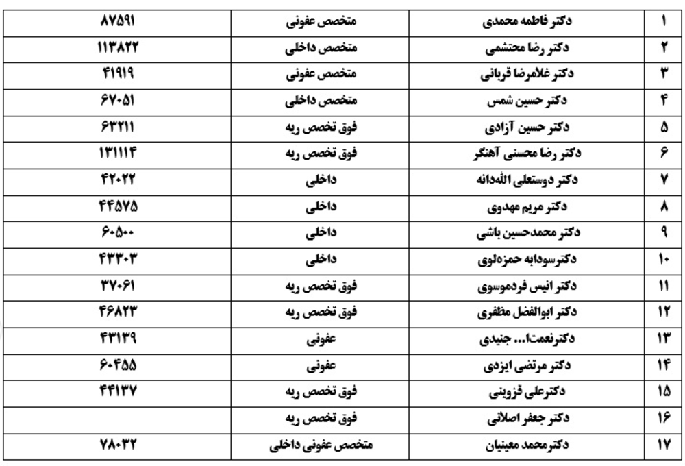 لیست این وزرا و پزشکان برجسته کشور به شرح زیر است: