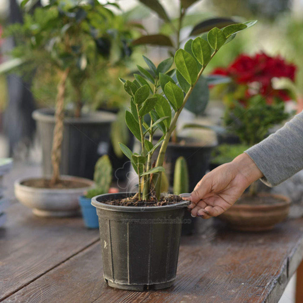آبیاری: زاموفیلیا هم مثل سانسوریاها کم آبی و خاک خشک را به آبیاری زیاد ترجیح میدهد. آبیاری زیاد به زاموفیلیا باعث میشود ریزومها و ریشههای گیاه خراب و بعد از چند روز برگهای گیاه زرد شوند، به طور معمول این گیاه هر ۱۰ روز یکبار نیاز به آبیاری دارد.