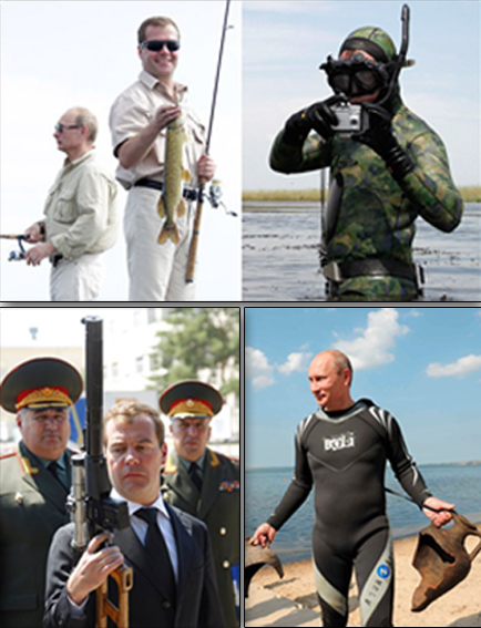 عكسي ديگر در حالي كه مدودف يك اردكماهي نيممتري را در دست گرفته، پوتين