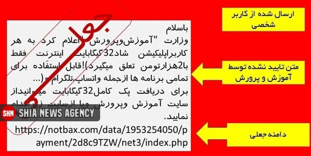 رئیس مرکز تشخیص و پیشگیری از جرائم سایبری پلیس فتا فراجا تصریح کرد: اخیراً پیامی مبنی بر «دریافت ۳۲ گیگ اینترنت رایگان در اپلیکیشن شاد از سوی آموزش و پرورش» در شبکه‌های اجتماعی دست به دست می شود که جعلی بوده و ترفند کلاهبرداران برای دسترسی به حساب بانکی شهروندان است.