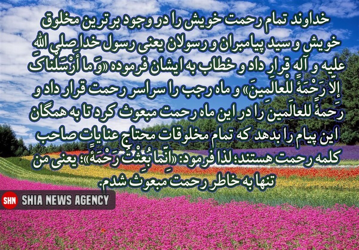 شیعه نیوز | خداوند رحمت خویش را در وجود پیامبر (ص) قرار داد و خطاب به ایشان فرموده «وَ ما أَرْسَلْناكَ إِلَّا رَحْمَةً لِلْعالَمِینَ» و ماه رجب را سراسر رحمت قرار داد و رحمةً للعالمین را در این ماه رحمت مبعوث کرد و خود پیامبر فرمود من به خاطر رحمت مبعوث شدم.