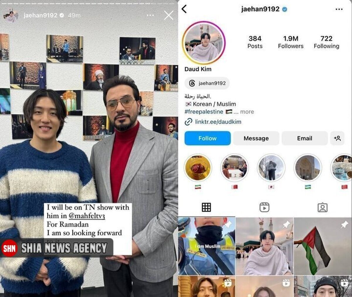 به گزارش «شیعه نیوز»، «داوود کیم»، جوان تازه مسلمان کرهای که با دعوت برنامه تلویزیونی محفل به تهران آمده است با انتشار عکسی از خود و حامد شاکرنژاد از حضورش در این برنامه خبر داد. در متن استوری داوود کیم آمده است: «من با او (حامد شاکرنژاد) در برنامه محفل برای ماه رمضان حضور خواهم داشت بی صبرانه منتظرش هستم گوش به زنگ باشید»