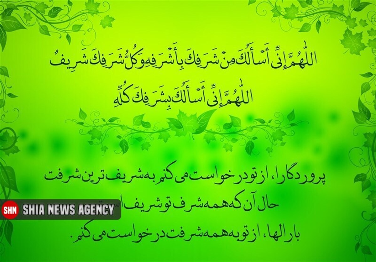 پروردگارا، از تو در خواست می‌کنم به شریف‌ترین شرفت حال آن که همه شرف تو شریف است. بارالها، از تو به همه شرفت درخواست می‌کنم.