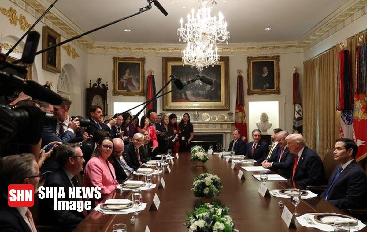 آنتونی آلبانیز در ابتدای سخنان خود از دونالد ترامپ به خاطر میزبانی از هیات استرالیایی و نشان دادن «دفتر بیضی شکل جدید و بهبود یافته» به آنها تشکر کرد و گفت: «من به رئیسجمهور ترامپ به خاطر توافق آتشبس در خاورمیانه تبریک میگویم.»