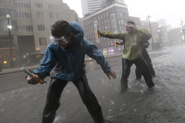 کمتر کسی جرات می‌کرد در حین توفان ایزاک که طی چند روز اخیر خسارات گسترده‌ای به سواحل ایالات متحده وارد آورده، از پناهگاه خود بیرون بیاید؛اما این چند دانشجوی هواشناسی مجبور شده بودند زیر باران بمانند.