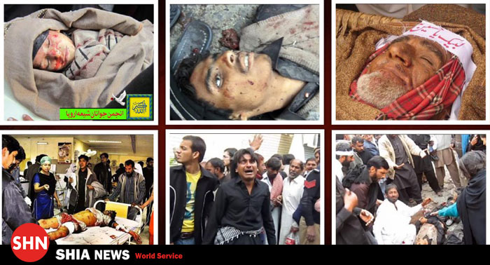 تصاویر دلخراش از انفجار بمب در مراسم شیعیان خانپور پاكستان در عاشورای 1390 که بر اثر ان بیش از 20 نفر شهید و بیش از 30 تن دیگر زخمی شدند.