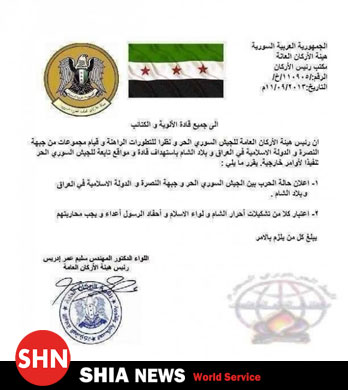 اعلان جنگ ارتش آزاد به جبهه النصره+سند
