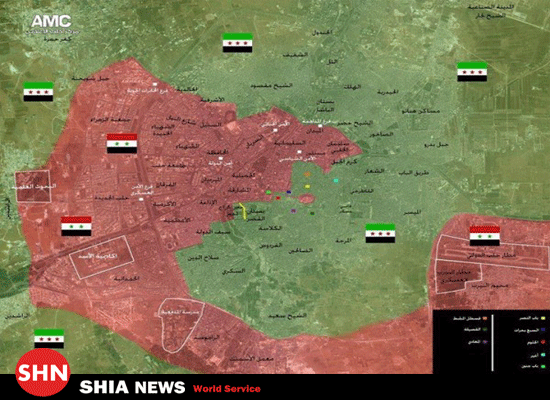 تصویر/مناطق تحت تسلط ارتش سوریه و تروریستها در حلب بر طبق نقشه
