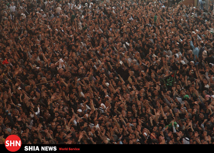 تصاویر/نصب بیرق عزا بر قبه مطهر حسینی در میان فریادهای لبیک با حسین(علیه السلام)