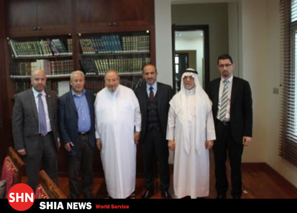 رئیس اتحادیه علمای مسلمان که در قطر اقامت دارد با رئیس ائتلاف معارضان سوری دیدار کرد.