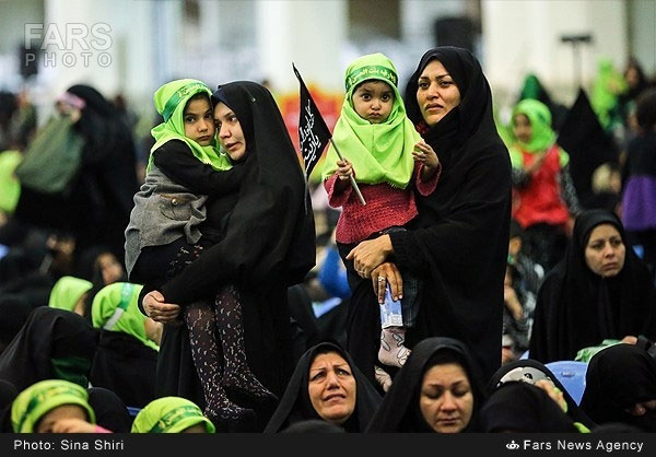 به گزارش «شیعه نیوز» به نقل از فارس، امروز (یکشنبه 17 آذرماه جاری مصادف با پنجم ماه صفر) سه ساله‌های حسینی در سالروز شهادت حضرت رقیه(سلام الله علیها) در مصلای امام خمینی تهران در حالی با قطرات اشک ذکر «یا رقیه» را بر زبان جاری می‌ساختند که شیفتگان حسینی با حجاب سبزشان جلوه تماشایی به این محفل نورانی بخشیده بودند.دختران سبزپوش که با پرچم سیاه‌شان که عبارت «کلنا فداک یا زینب» بر آن حک شده بود، در قالب دسته‌های منظم در صحن شبستان با برپایی روضه سه ساله امام حسین(علیه السلام) ایستادند و بر سر سینه خود می‌زدند.