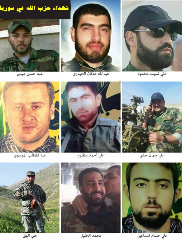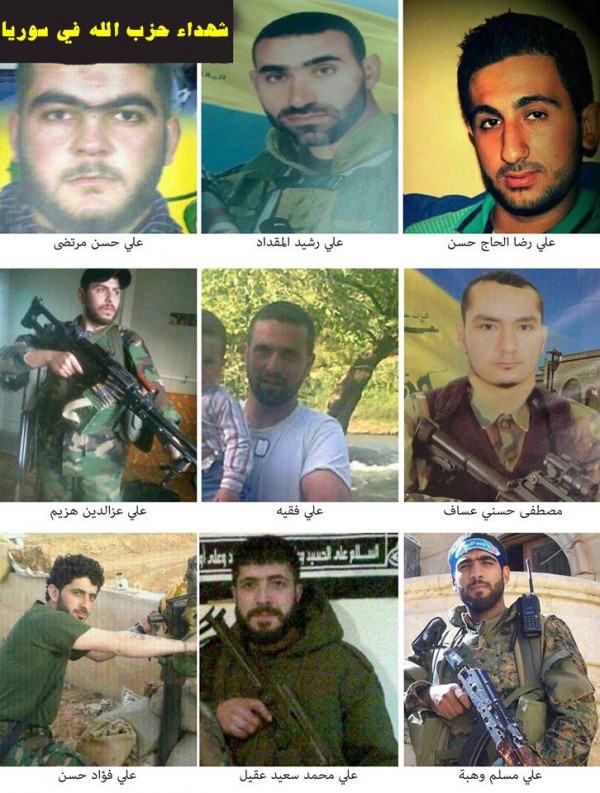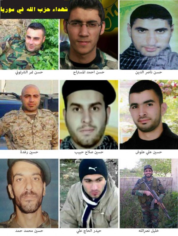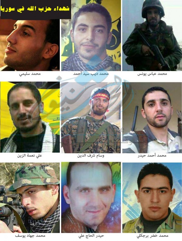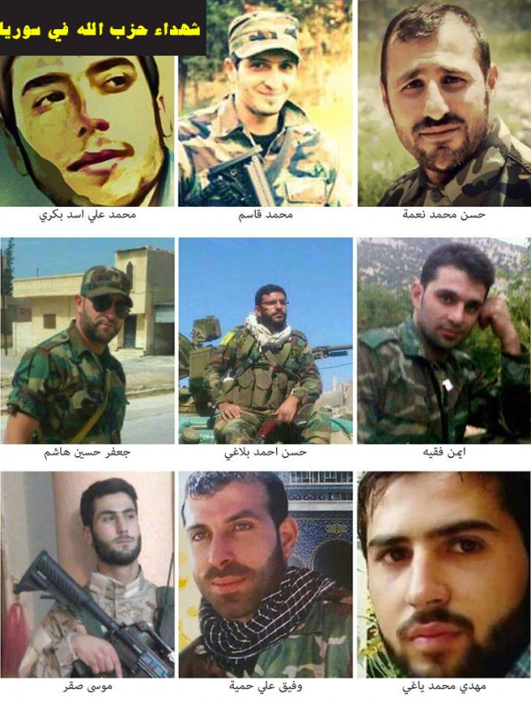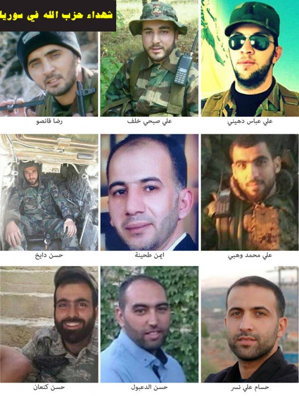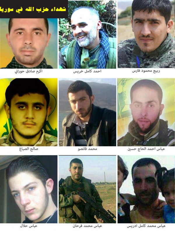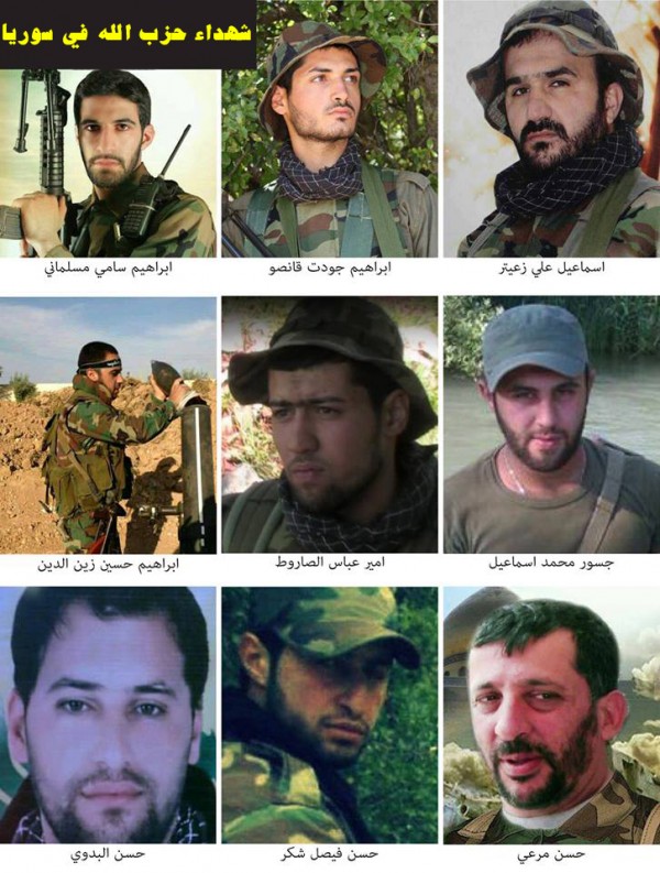 با شروع ناآرامی های سوریه صدتا تن از جوانان حزب الله برای واجب جهادی خود عازم این کشور شدند و دهها نفر ازآنها شهید شده اند، در ذیل ، تصویر 90 تن از این شهیدان که در مناطق زینبیه، حمص، القصیر، ریف دمشق و غوطه شرقیه به شهادت رسیده اند آمده است.