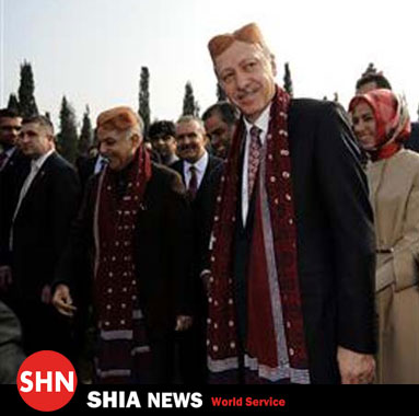 به گزارش «شیعه نیوز» به نقل از مهر، رجب طیب اردوغان نخست وزیر ترکیه در سفر خود به پاکستان امروز در نمایش فرهنگی بزرگ کالج آتچیسون لاهور شرکت کرد.ورود او به این مراسم با شلیک 19 گلوله تفنگ برای خوش آمدگویی همراه بود و در این مراسم شهباز شریف وزیر ارشد پنجاب و برادر نخست وزیر پاکستان او را همراهی می کرد.