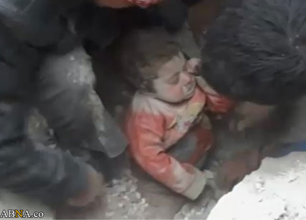 به گزارش «شیعه نیوز»، فیلمی که خبرنگار خبرگزاری آسوشیتدپرس از نجات «جینا خلیل» 14 ماهه گرفته، نشان می‌دهد پس از حمله موشکی تروریست‌های تکفیری وابسته به القاعده که در تاریخ 22 ژانویه باعث فرو ریختن ساختمان محل زندگی او شد، چند مرد همراه با اضطراب در حال حفر در میان آوارها هستند.به گفته فعالان، این نوزاد حداقل سه دقیقه زیر آوار بوده اما به محض آزاد شدن دست‌هایش از زیر آوار، شروع به پاک کردن چشم‌هایش کرد که نشان می‌داد زنده است.گفته می‌شود که او هیچ آسیب ظاهری ندیده است. مادر این دختر بچه در جریان حمله تروریست‌ها جان خود را از دست داد.